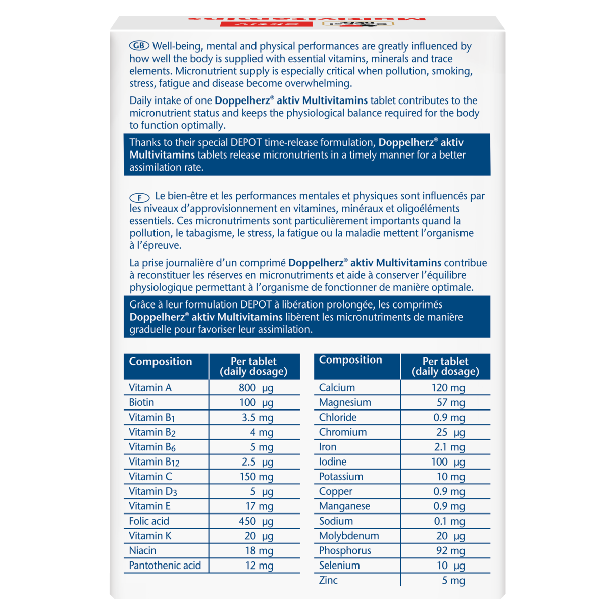 Only one tablet provides the body with 27 important vitamins, minerals and trace elements continuously during the day